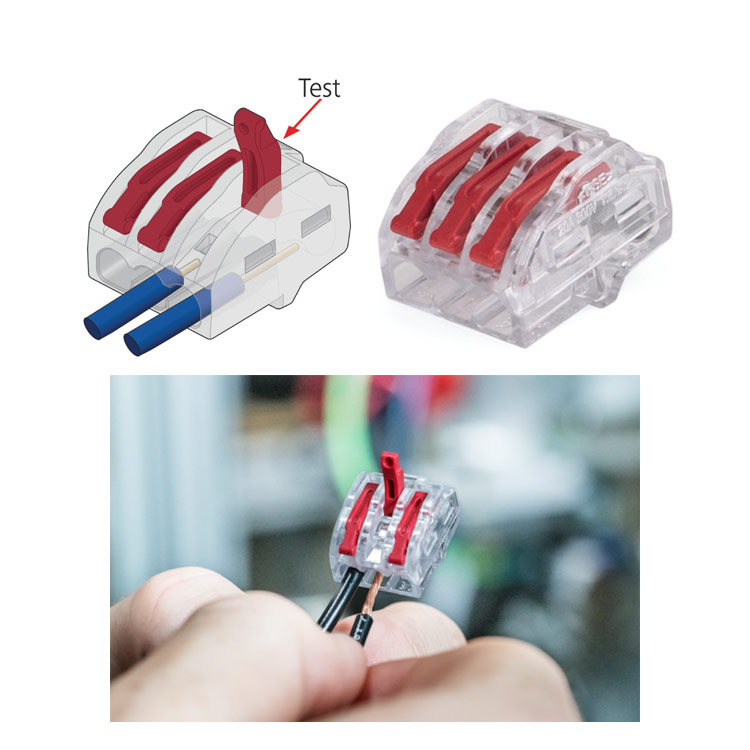 - Conector universal para cables rígidos, flexibles y finos;